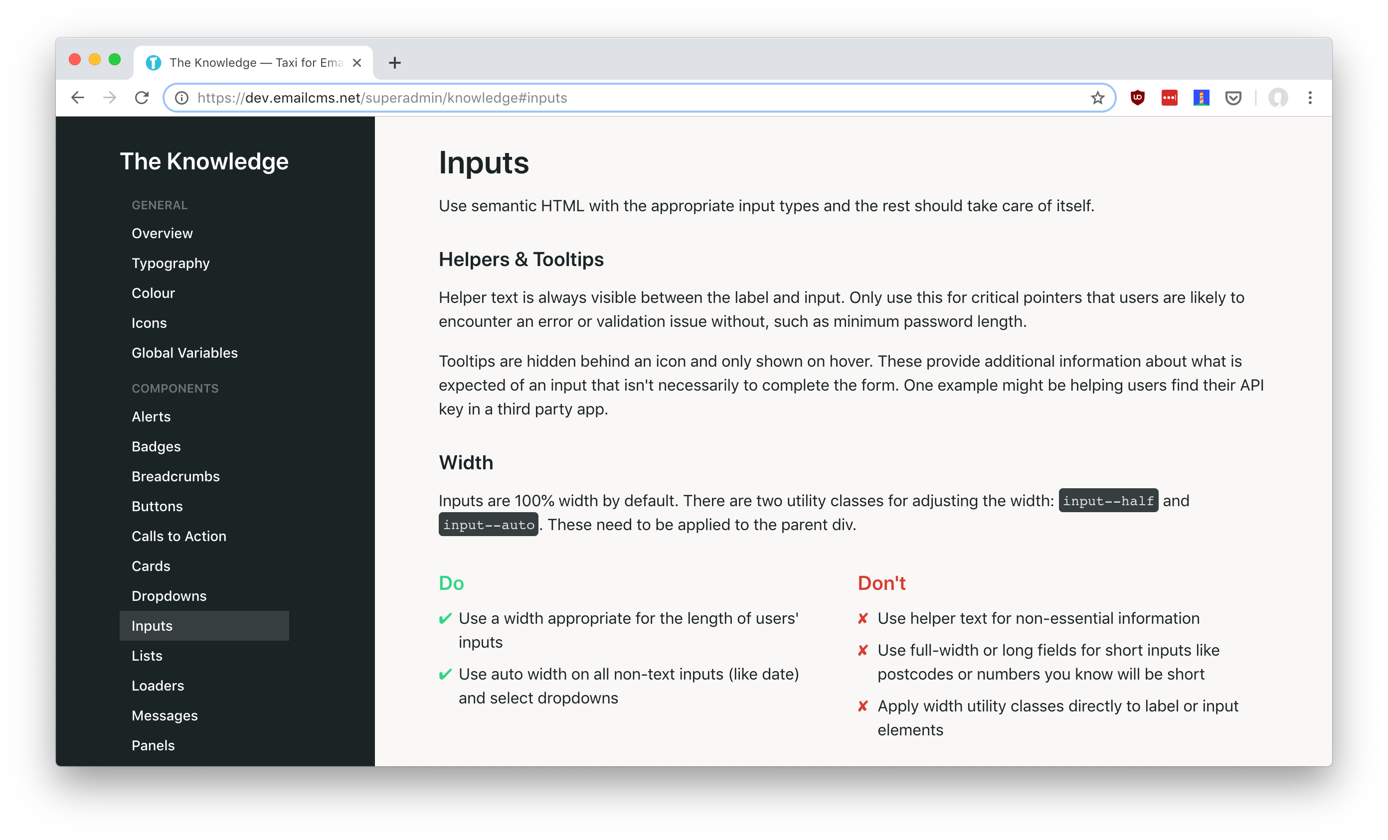 For example, file inputs were previously simple <input type="file"> elements; they became more complex, with parent and child elements to create the desired look and behaviour. Refactoring this way meant meant only switching that HTML for <%= taxi_file_upload_tag %> and keeping the complexity in a single place, allowing future changes more easily as well.